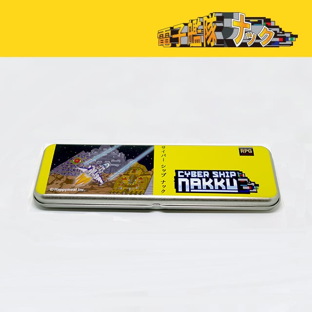 英字ロゴとパッケージがデザインされた「電子艦隊ナック」のカンペン。